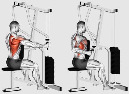 Siddende række maskine. En nøgleøvelse til opbygning af rygtykkelse. Udfør 4–6 sæt af 8–12 reps.