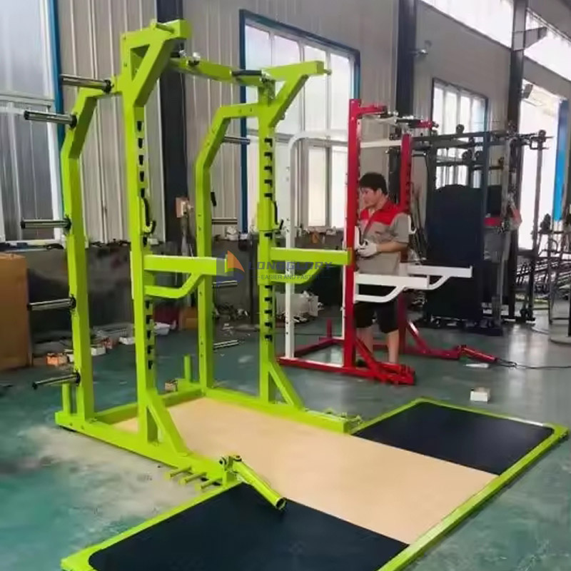 Squat-stativet med vægtløftningsplatform er lavet af Q235 stål af høj kvalitet med en tykkelse på 3 mm, som er velegnet til brug med høj intensitet i fitnesscentret. Udstyrets sømme er svejset ved hjælp af en intelligent robotarm, hvilket gør svejsningerne glatte og smukke. Maskinens overflade er malet med dobbeltlags elektrostatisk pulversprøjtning, som er glat, korrosionsbestandig og nem at rengøre. Lang levetid.
